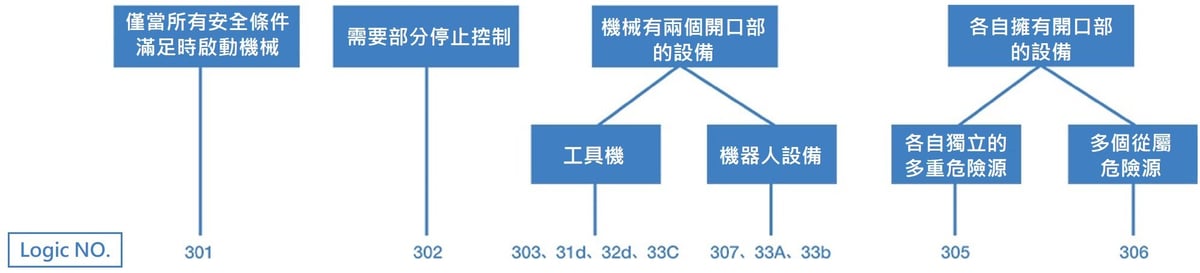 302 在具有多個緊急停止裝置和多個開口部的生產設備中,當需要進行部分停止控制時的控制邏輯。